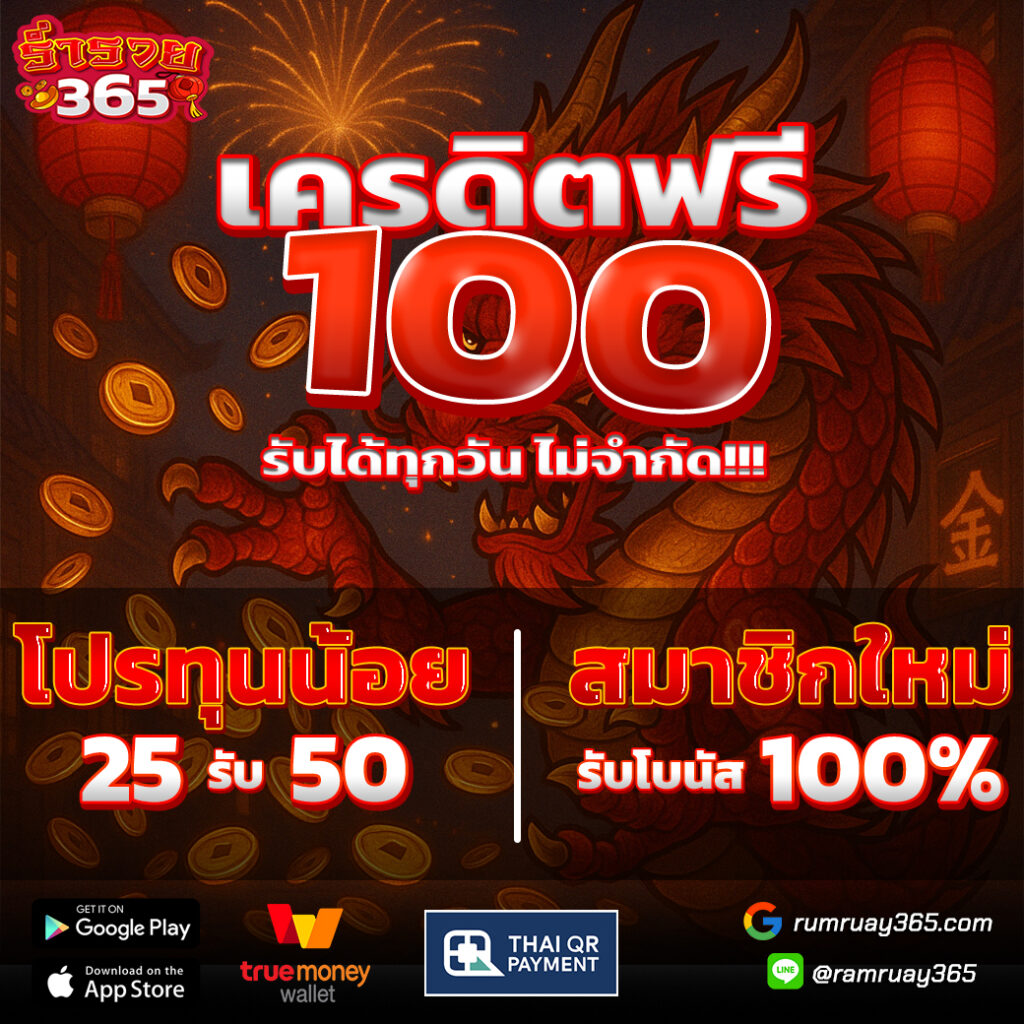 - โปรโมชันแน่น ๆ ฝาก 25 รับ 50 / รับโบนัส 100% / ลุ้นทอง หมุนกงล้อ ลุ้นเงินสดทุกสัปดาห์